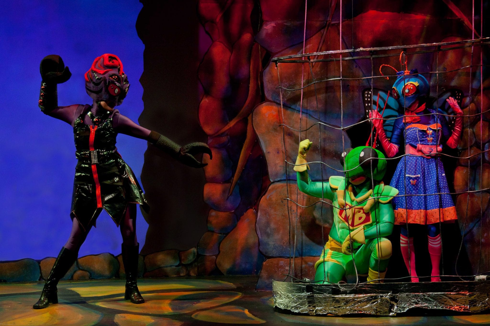 Watching over the ants, crickets, beetles and bees is Mighty Bug at Center for Puppetry Arts.