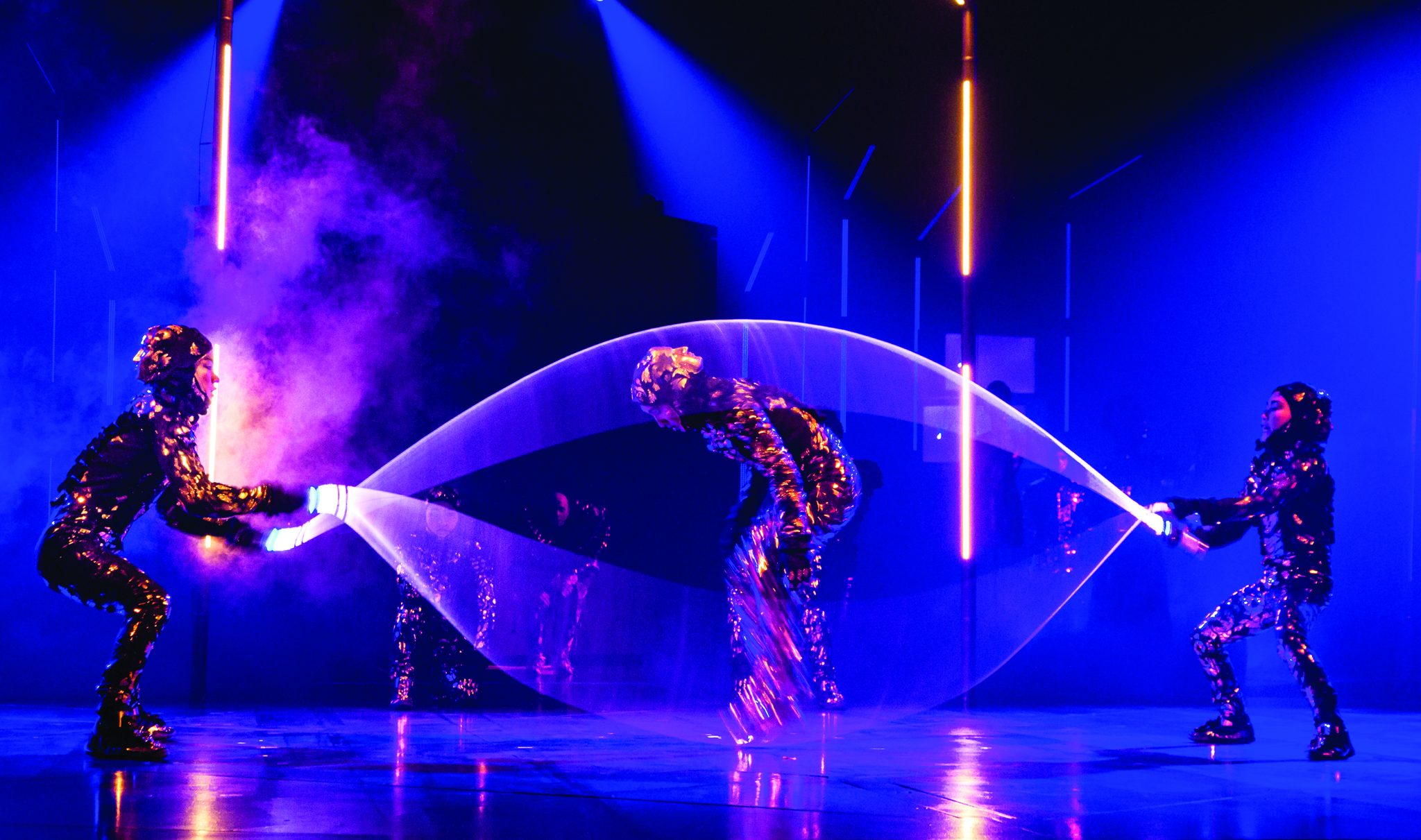 This incredible show chronicles the encounters of a parachuted traveler and will incorporate water.
